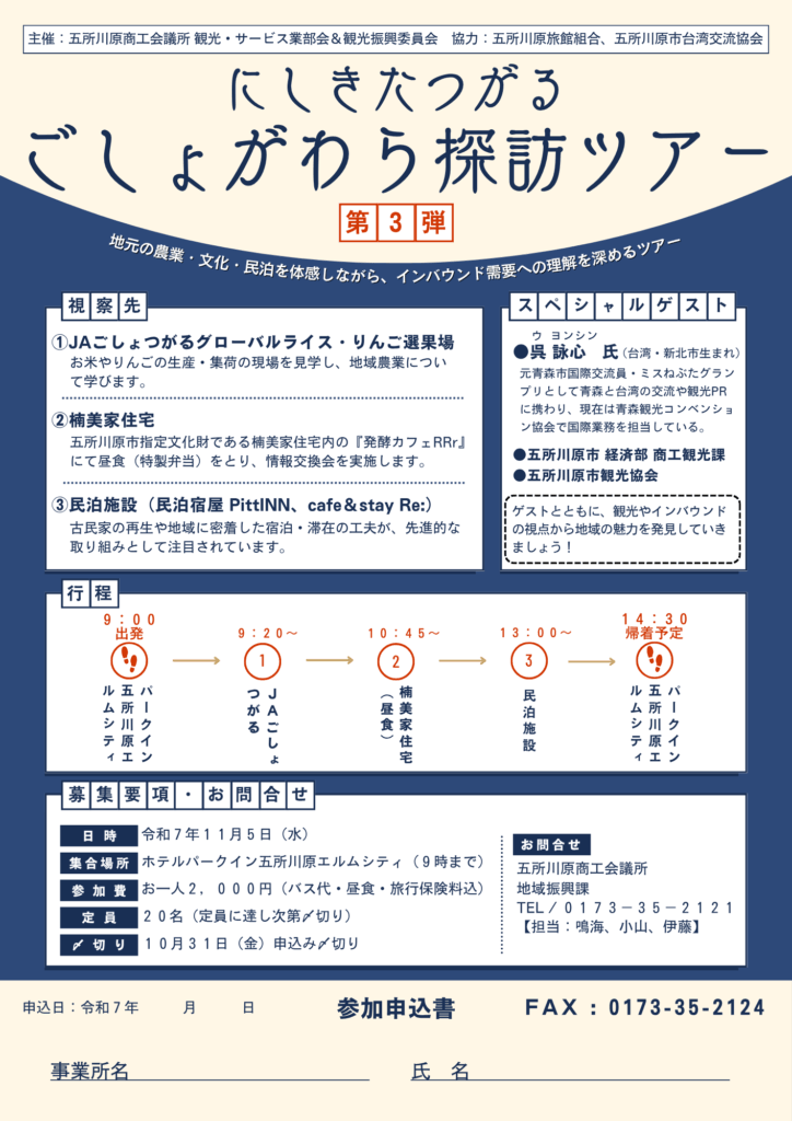 ※五所川原商工会議所会員、五所川原旅館組合員、五所川原市台湾交流協会員の方のみご参加いただけます。ご了承ください。