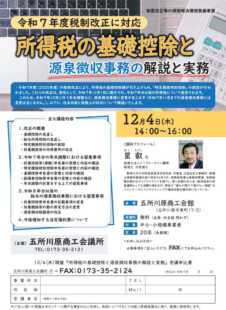 本セミナーでは、改正内容と実務上の留意点を中心に、年末調整・源泉徴収事務を分かりやすく解説します。