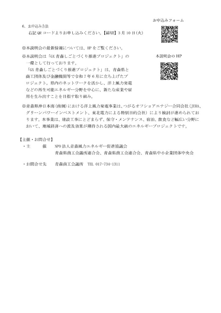 <主 催>NPO法人青森風力エネルギー促進協議会、青森県商工会議所連合会、青森県商工会連合会、青森県中小企業団体中央会